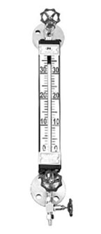 UGS系列彩色石英玻璃液位计通过上下连接法兰与容器构成连通器,可以直接观察到容器内介质液位的实际高度该门产品采用了自然光在液体中折射的光学原理,测量时,使液相显示绿色,气相显示红色,由于液、气相显示反差很大。所以指示鲜明清晰。 UGS-A液位计主体和阀门之间用弯管连接,能有效地消除因安装所产生的应力和热胀冷缩所产生的应力,并能对安装尺寸误差进行调整,安装使用方便。上下阀门内装有安全钢珠,当玻璃因意外损坏时,钢球在容器内压的作用下自动密封,防止容器内液体外溢。 UGS-B系列普通型彩色石英玻璃液位计不带安全止回阀,带安全止回阀的产品系列为。 UGS-C液位计在阀门等接部件采用内衬PP,可以适用于大多数腐蚀性介质。 UGS-D液位计采用内衬PTFE的三通和直管组合,可以吗适用于绝大多数腐蚀性介质。 |