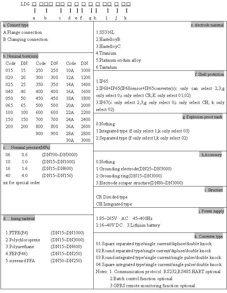 The electromagnetic flowmeter is composed of two parts by electromagnetic flow sensor and electromagnetic flow converter.The operation of an electromagnetic flowmeter is based on Faraday law of electromagnetic induction.The mainly parts of the sensor are: measuring tube,electrode poles,excitation coil,iron core,yoke and housing. The measuring tube of the sensor is a short alloy tube whose diameter is D, the inner surface of it has an insulating liner.Two electrodes are fixed in the measuring tube along with the diameter direction of it and they usually flush with the inner surface liner.When excitation coil pulsed by two-way square wave,there generates a working magnetic field with a flux density B in the vertical direction of the measurement axis.In the meantime,if some electrical conductivity liquid flows at an average velocity V through the measuring tube ,cuts lines of the magnetic field,there generates induced electromotive force E.Electromotive force E is directly proportional to the product of flux density B、measuring tube diameter D and average velocity V,that's: E BVD. Electromotive force E(flow signal) is measured by the electrodes and transmitted to transducer through cable.After the transducer handles the flow signal by magnifying it, the flow and total amount can be displayed,also will output pulse and analog current etc.